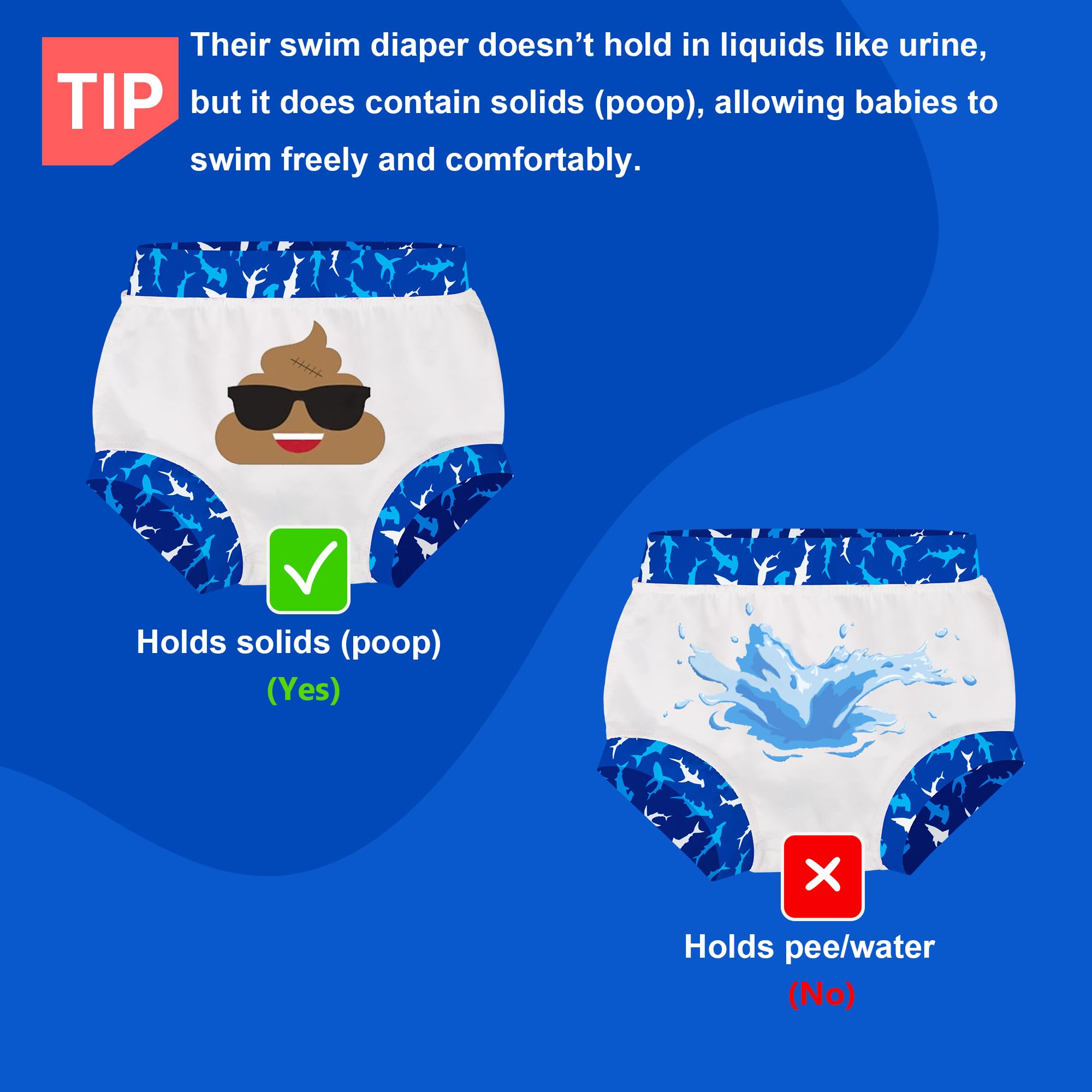 - 【Versatile Use】 Ideal for swim lessons, beach outings, or backyard splash days, these reusable swim diaper covers are perfect for every water occasion. Their durability, combined with the waterproof and non-absorbent design, ensures your baby is ready for endless water fun while staying protected and comfortable. Durable, soft, and comfortable, they’re a go-to solution for active babies exploring the water world.